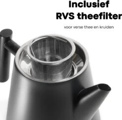 Vatten® – Premium RVS Theepot – Incl. RVS Theefilter – 1L – Zwart – Dubbelwandig